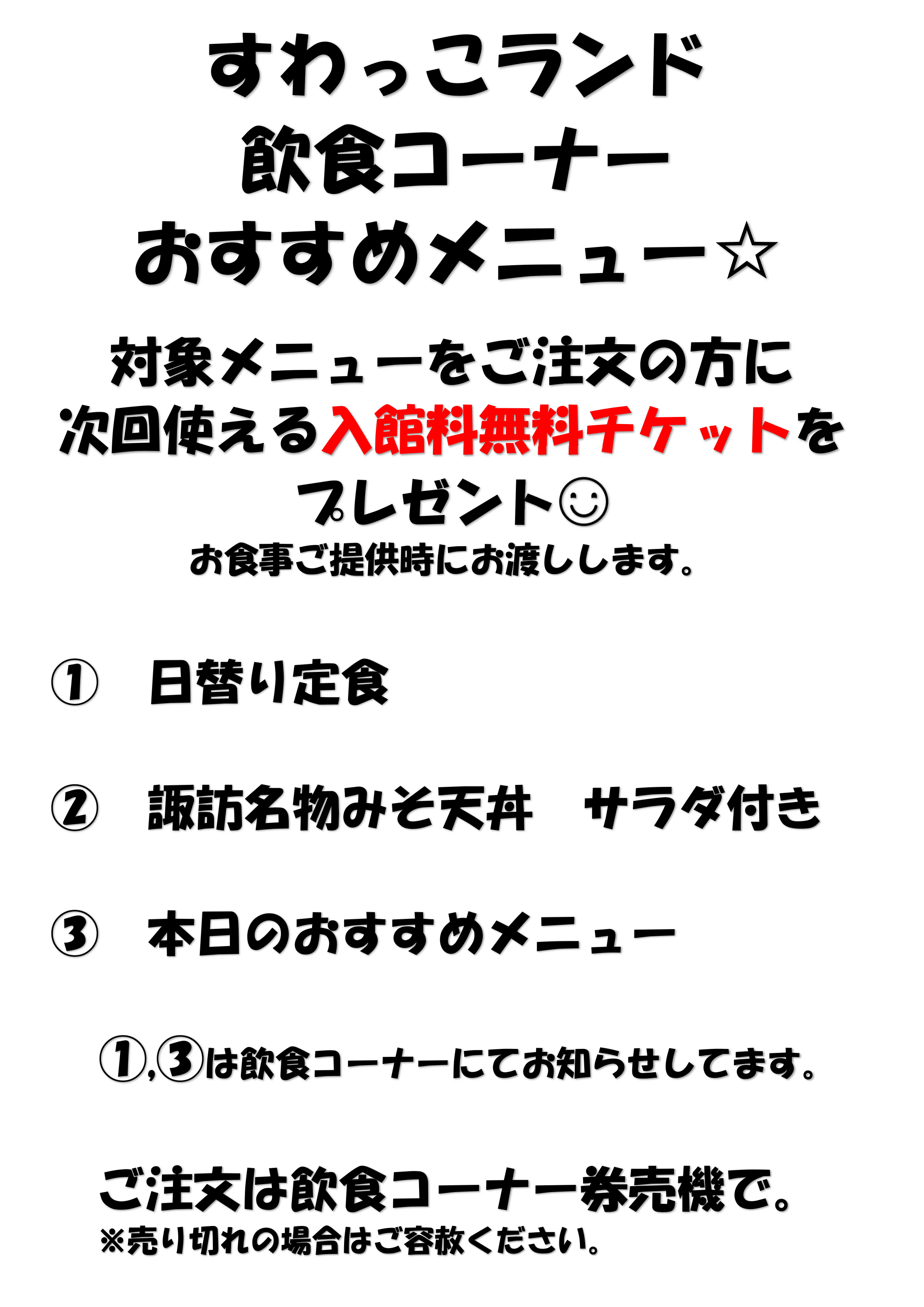 次回使える入館無料チケットがもらえる! 飲食コーナーキャンペーン