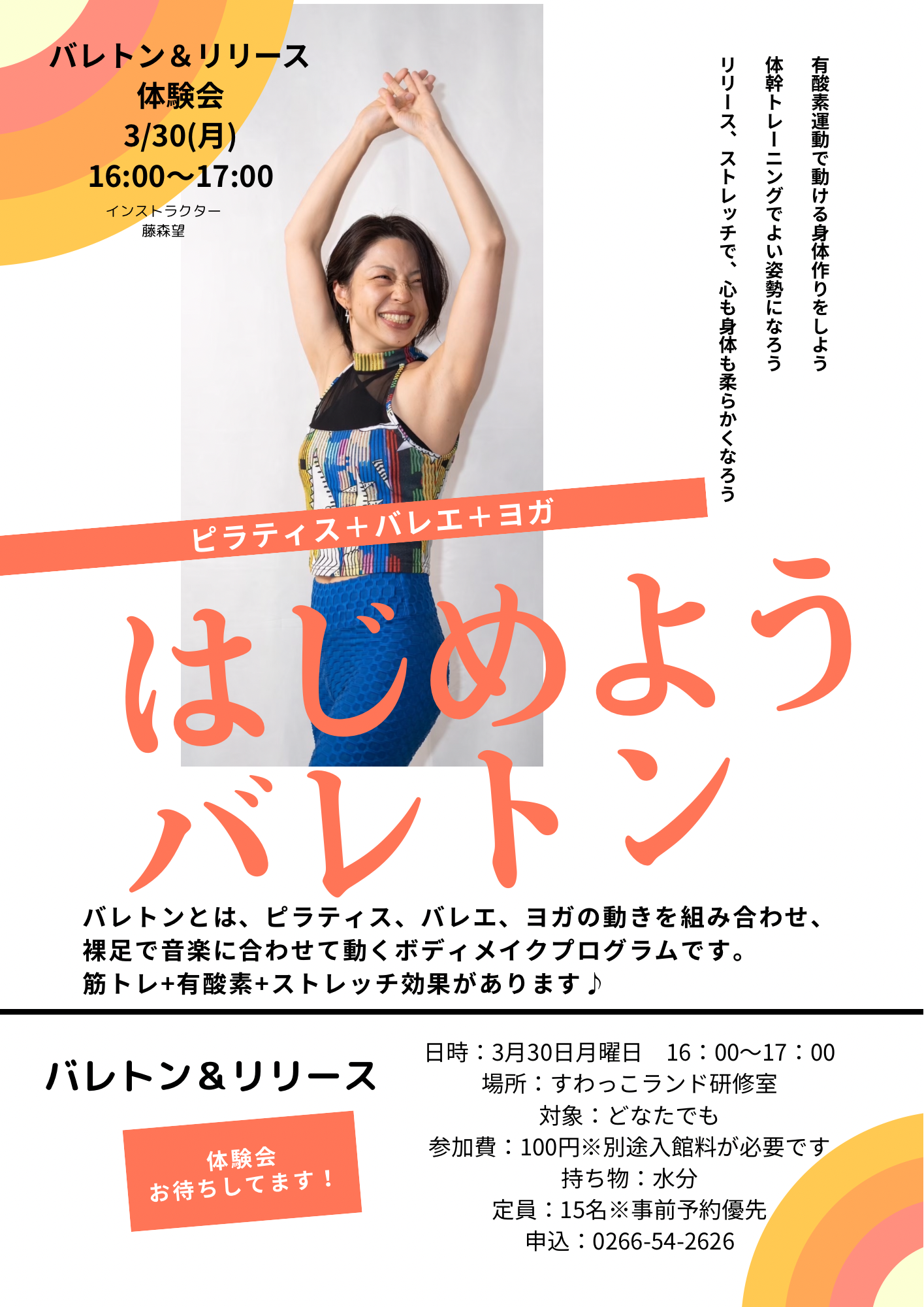 3/30(月)レッスン体験会「バレトン&リリース」