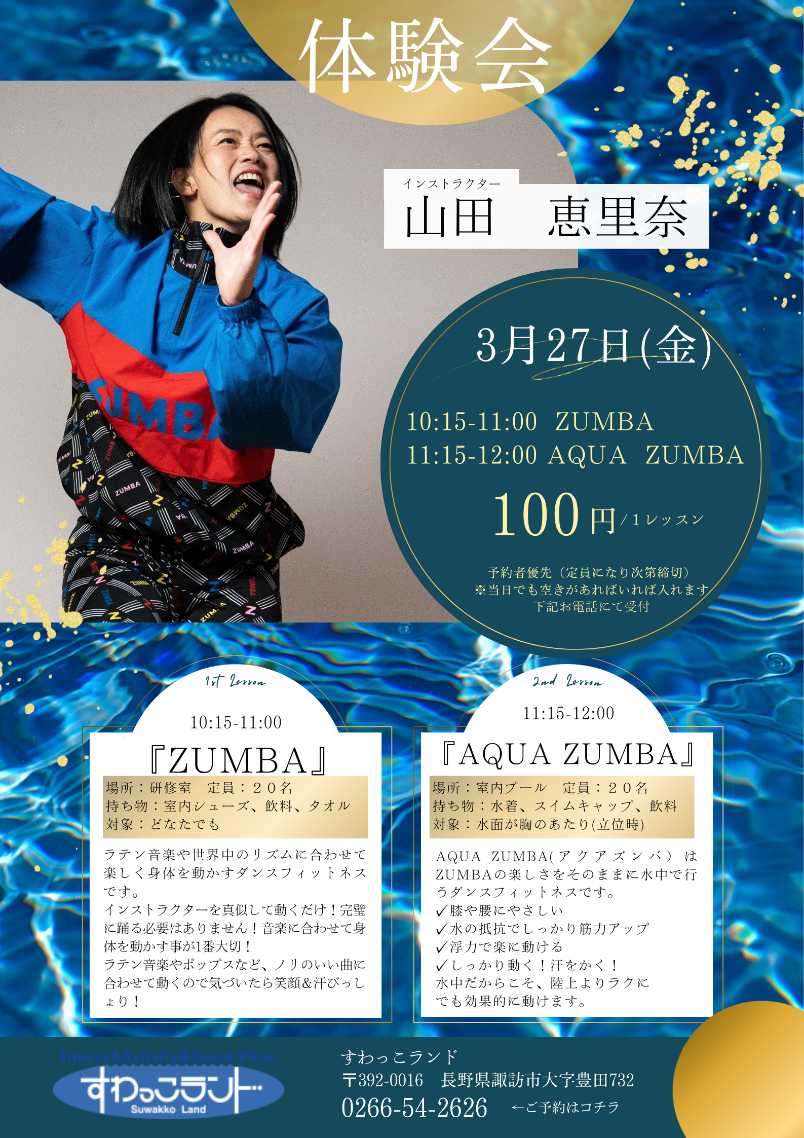 3/27(金)レッスン体験会「ZUMBA」「AQUA ZUMBA」